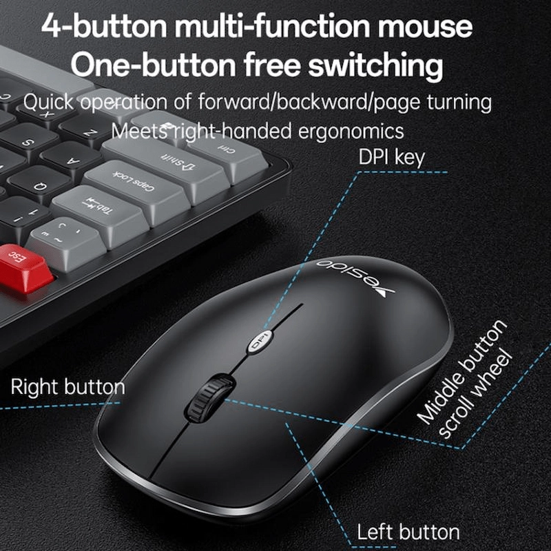 Upgrade your workspace with the Yesido Wireless Keyboard & Mouse Combo KB43. Designed for comfort and convenience, it delivers a smooth, cable-free experience with quiet typing and precise mouse control. Just plug it in and get to work—perfect for office, study, or everyday use with a clean and modern setup.
